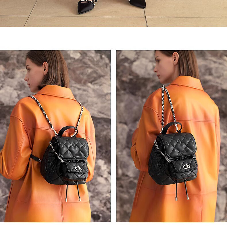 商品名称:苏巴赫菱格大容量柔软多用双肩包女2024新款生日礼物百搭包包送女朋友 黑色【品牌礼盒】
