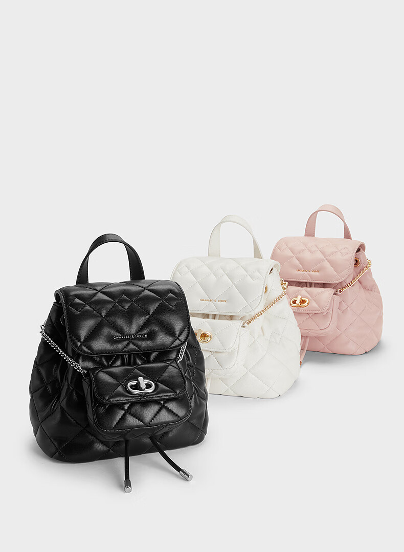 CHARLES&KEITH菱格大容量柔软多用背包书包双肩包包女包生日礼物CK2-60151400 Cream奶白色 S
